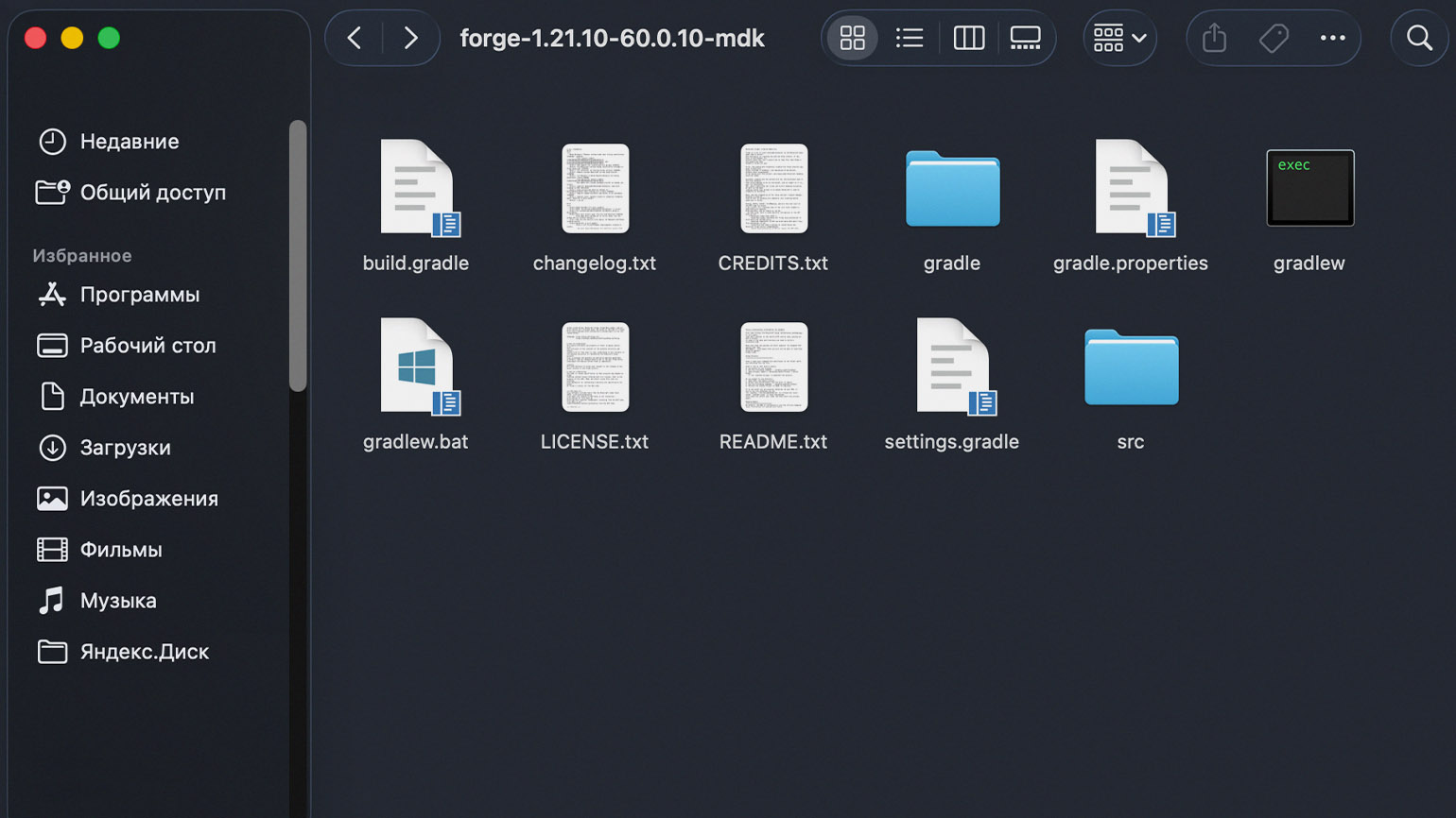 Чтобы начать работу над модом, скачайте Forge MDK (Mod Development Kit — набор для разработки модов). Это шаблон проекта со всеми необходимыми файлами, базовыми функциями и заготовками кода.