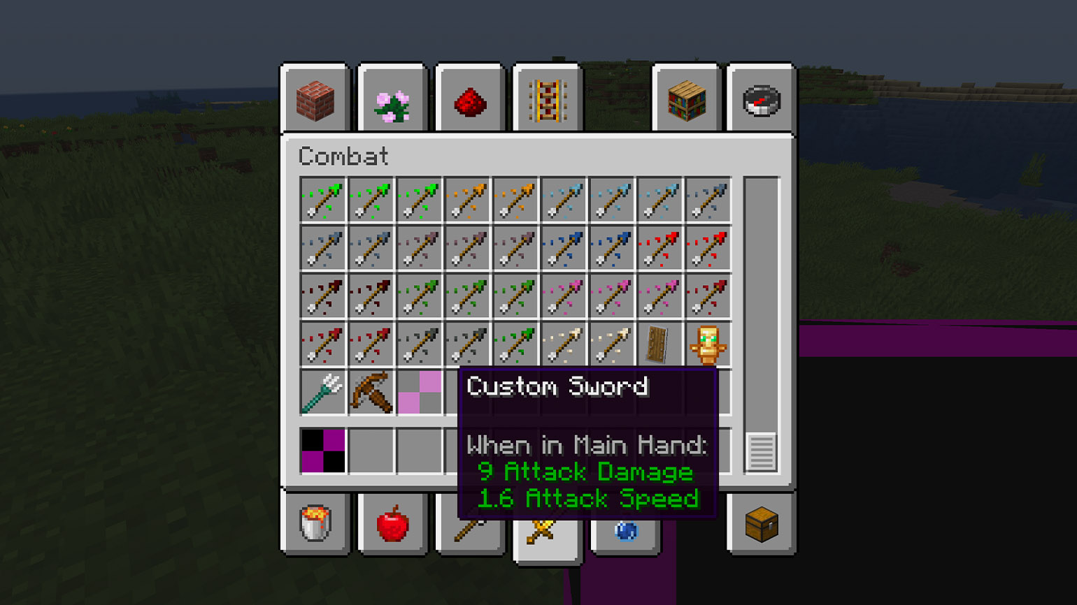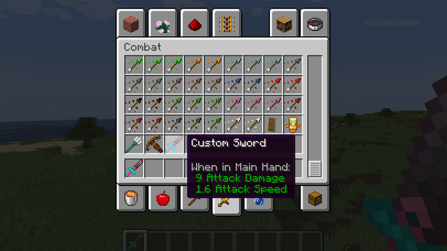 Когда вы создаёте новые инструменты, им нужно задать три свойства: материал (Tier), урон (Attack Damage) и скорость атаки (Attack Speed).