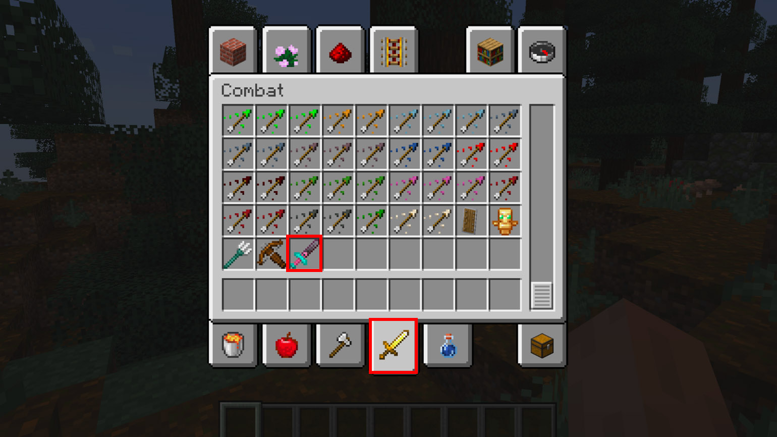 Материал (Tier) определяет прочность предмета и количество использований до поломки. Незеритовые инструменты — самые прочные, деревянные — самые слабые. Мы выбрали для своего меча алмаз, однако вы можете использовать любые другие материалы: