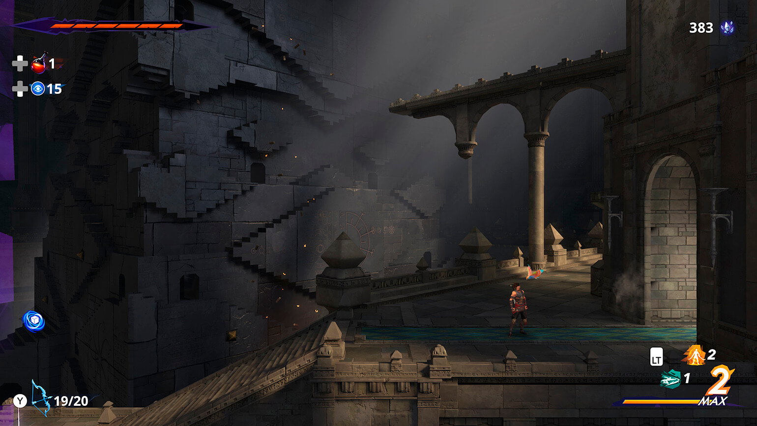 Из-за чего, к примеру, явно пострадал сюжет: The Lost Crown пытается разыграть эпическую историю о времени и его парадоксах, но ей не хватает ни лиц, ни выразительных средств. Замах на уровне ремейка Final Fantasy 7, но получается сумбурно и поверхностно. Хоть и в меру увлекательно.