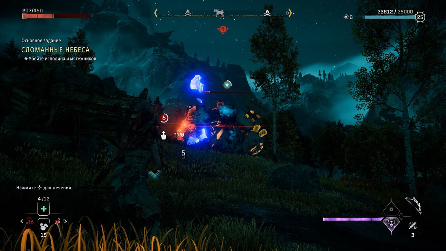 Ко всему прочему в ближних боях нередко происходит выборочная фокусировка, которую нельзя контролировать. Например, во время сражения Элой может замахнуться не на врага, а на животное, случайно пробежавшее мимо.