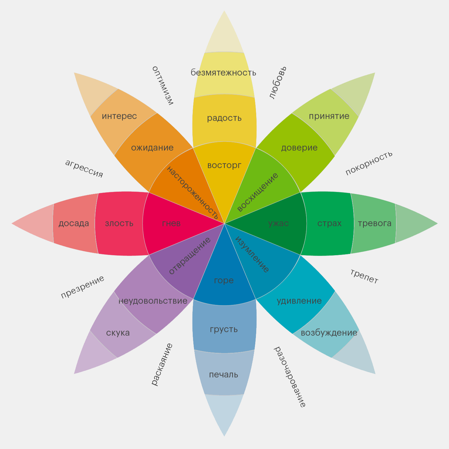 Первый шаг — развить словарный запас, необходимый для разговора о чувствах. Сложно осознать, что испытываешь принятие или досаду, если не знаешь, как назвать эти эмоции. Чтобы разобраться в лексиконе собственного внутреннего мира, можно использовать карты эмоций.