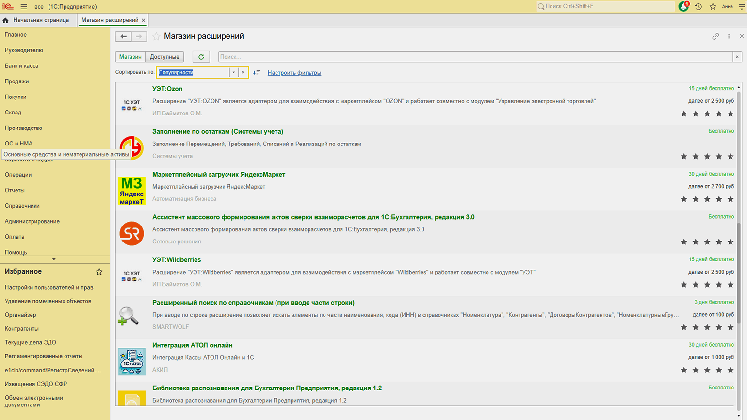 - расширения для обмена с маркетплейсами.