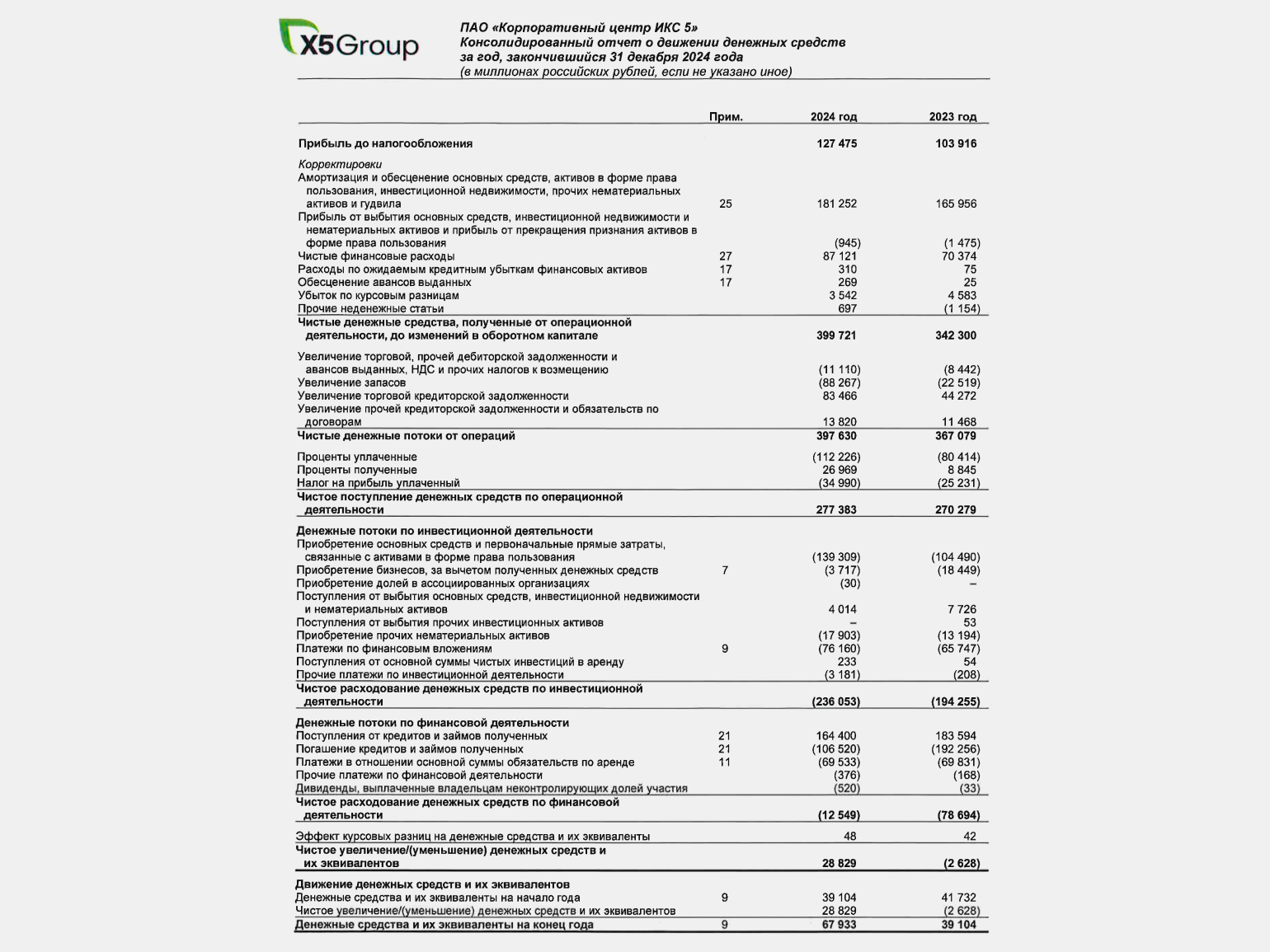 Полученные займы − Погашенные займы − Выплаченные дивиденды