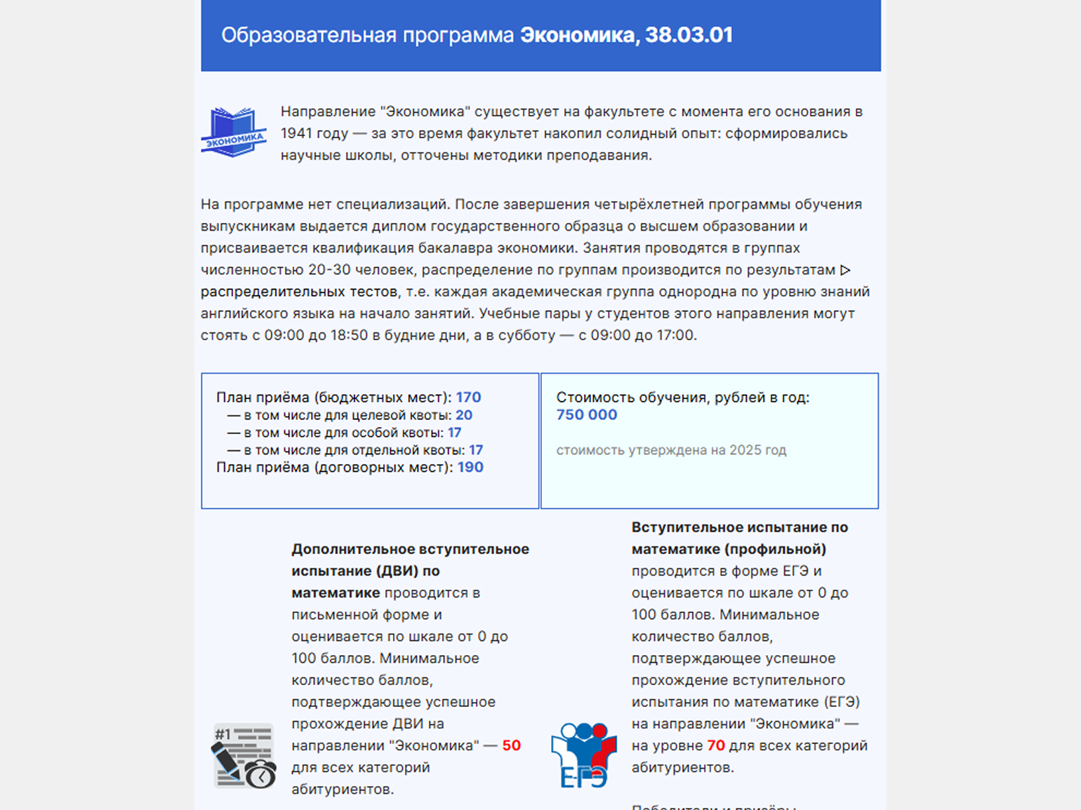 Некоторые вузы проводят собственные вступительные испытания в дополнение к ЕГЭ. Например, в МГУ абитуриентам, поступающим на экономические направления, нужно сдать дополнительный экзамен по математике.