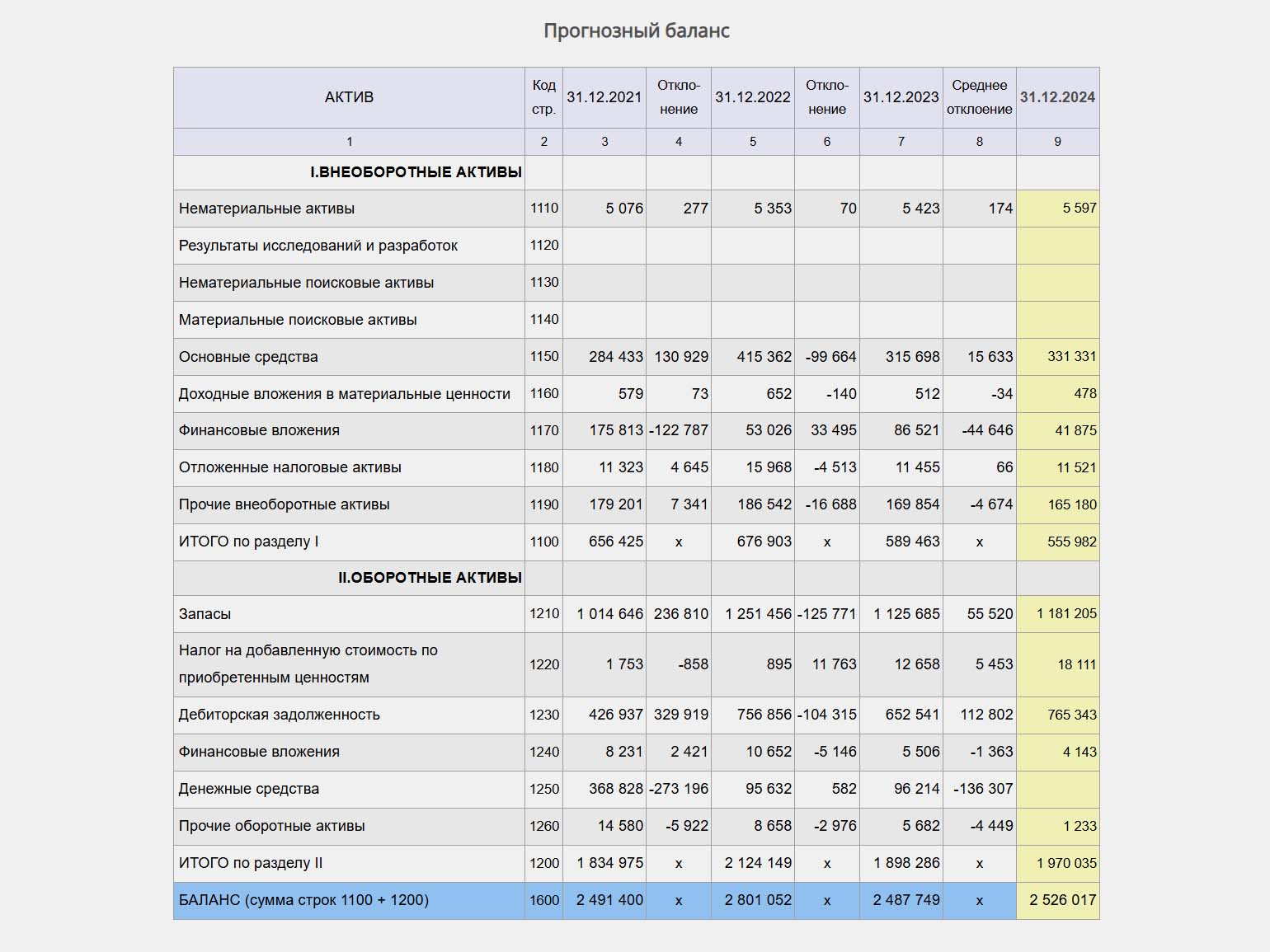 Прогнозный баланс — форма финансовой отчётности, с помощью которой отражают прогнозные значения активов и пассивов. Активы — это все ресурсы, которыми располагает бизнес; пассивы — все его обязательства. Прогноз могут составлять на любой срок, но чаще всего его делают на 3–7 лет.
