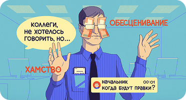 Кроме того, один из опросов HeadHunter показал, что сотрудников не устраивают навыки коммуникации руководителей, напряжённая атмосфера и то, что начальник не интересуется их мнением. Обесценивание и отсутствие конструктивной обратной связи создают «культуру молчания», когда человек не видит смысла делиться переживаниями и просто «тихо терпит».