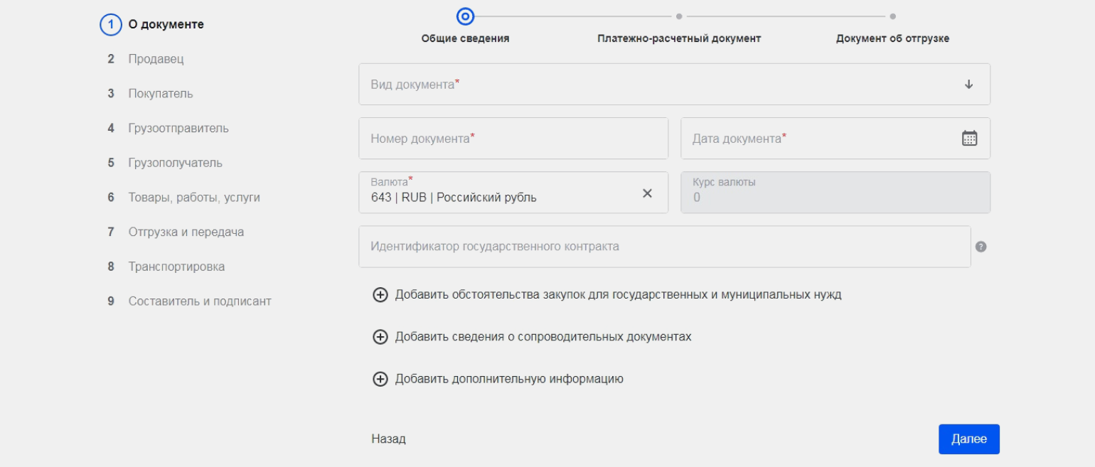 Подробнее о том, как заполнить УПД, будем говорить в следующем разделе.