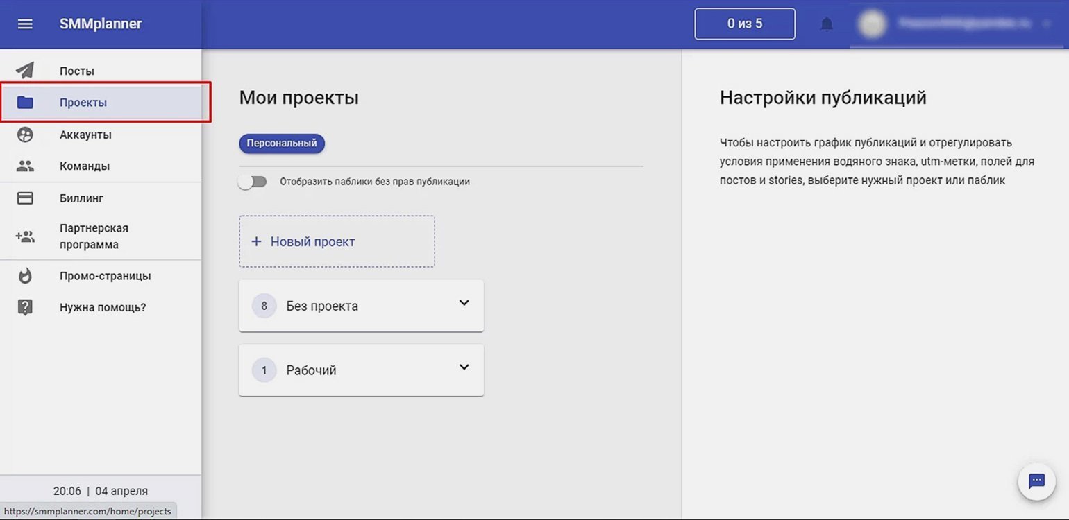 Нужно просто зайти в свой аккаунт и в левом боковом меню кликнуть на название раздела «Проекты».