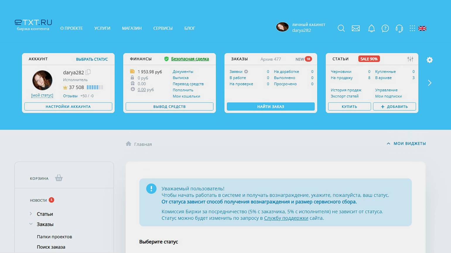 На Etxt можно выполнять заказы в четырёх статусах: физическое лицо, самозанятый, индивидуальный предприниматель и юридическое лицо.