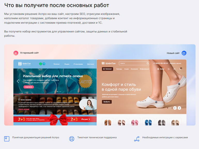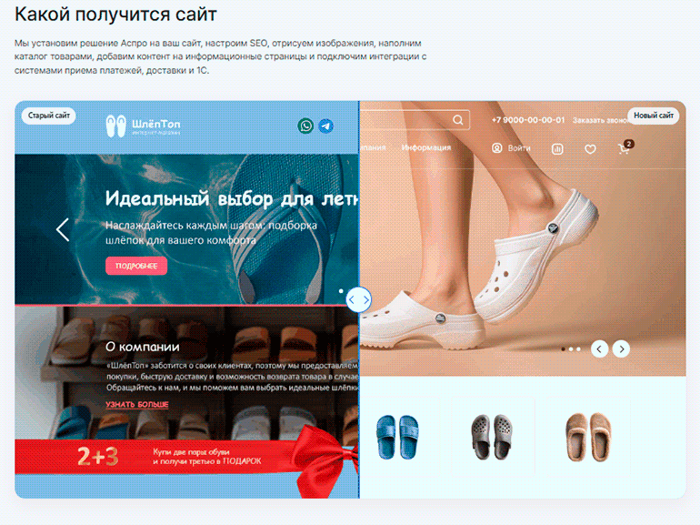 Также мы добавили интерактивную шторку «до — после» для фотографий, чтобы наглядно показать изменения при запуске нового сайта. Благодаря виджету изображения стали больше — можно лучше разглядеть детали. Код получился универсальным, поэтому планируем использовать его и на других страницах сайта — например, в кейсах.