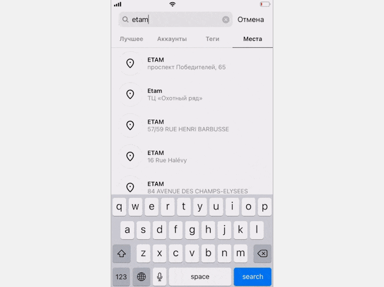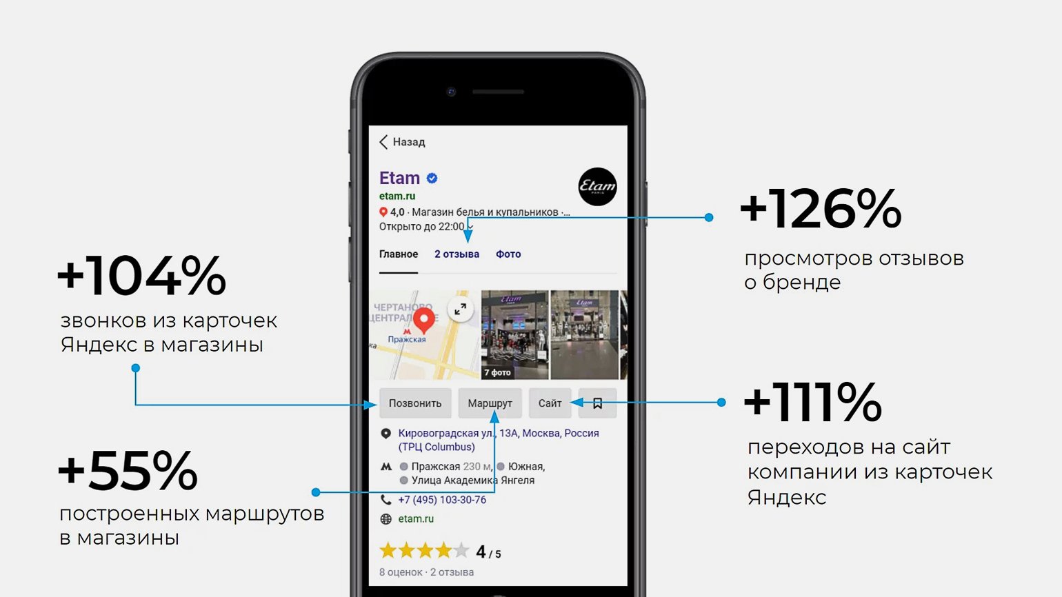 Теперь пользователи всегда приходят в магазины Etam по верным адресам и в актуальное время работы.