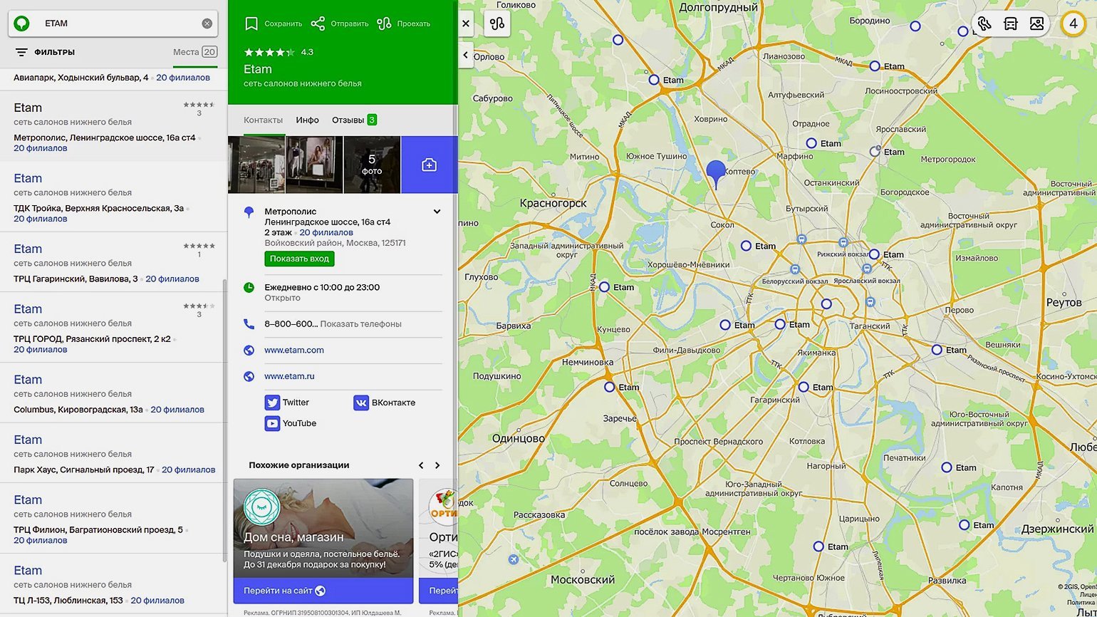 Это говорит о том, что Etam обходит конкурентов в локальной выдаче.