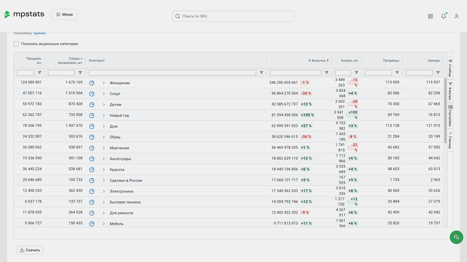 Скриншот: Mpstats / Skillbox Media