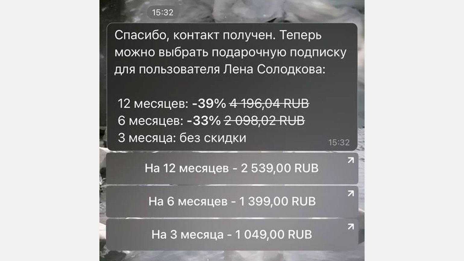 Также Telegram Premium можно подарить другому пользователю — в этом случае стоимость подписки такая: