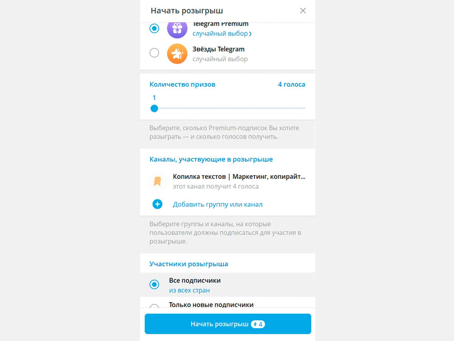 Как разыграть Telegram Premium в канале