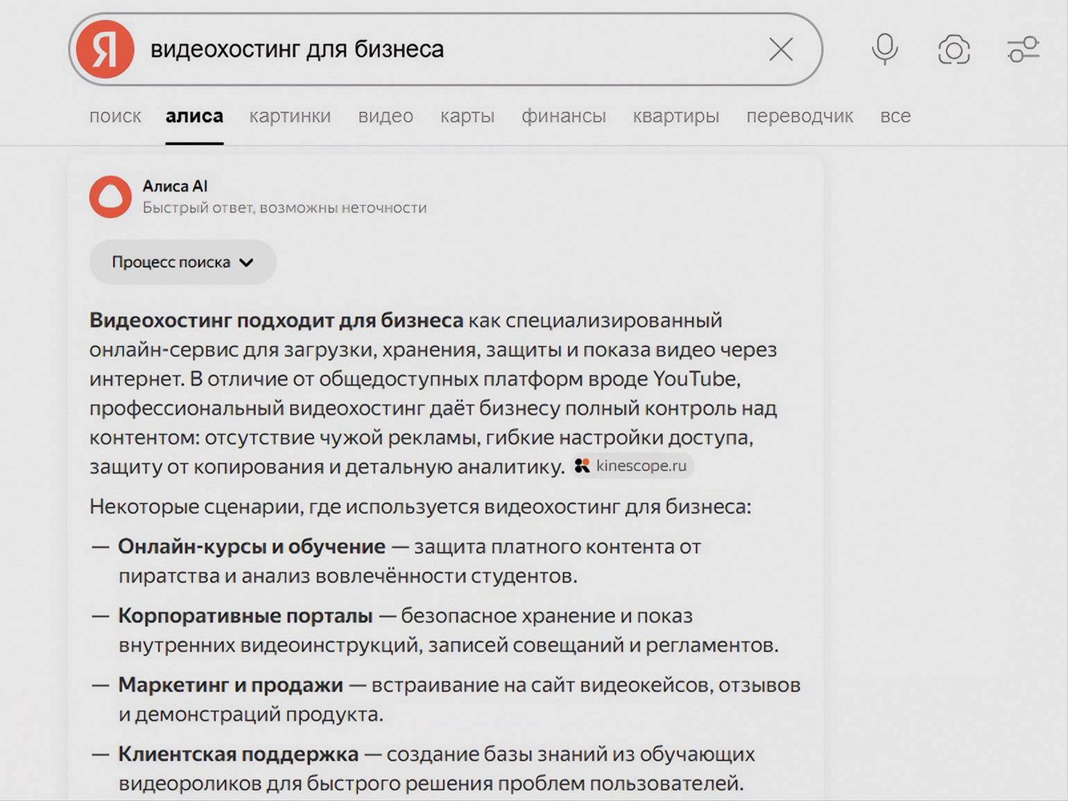 Некоторые профессиональные видеохостинги вроде Kinescope, Wistia и других предоставляют опцию создания скрытого блока. Её нужно включать отдельно — тогда нейросети смогут индексировать содержание видео.