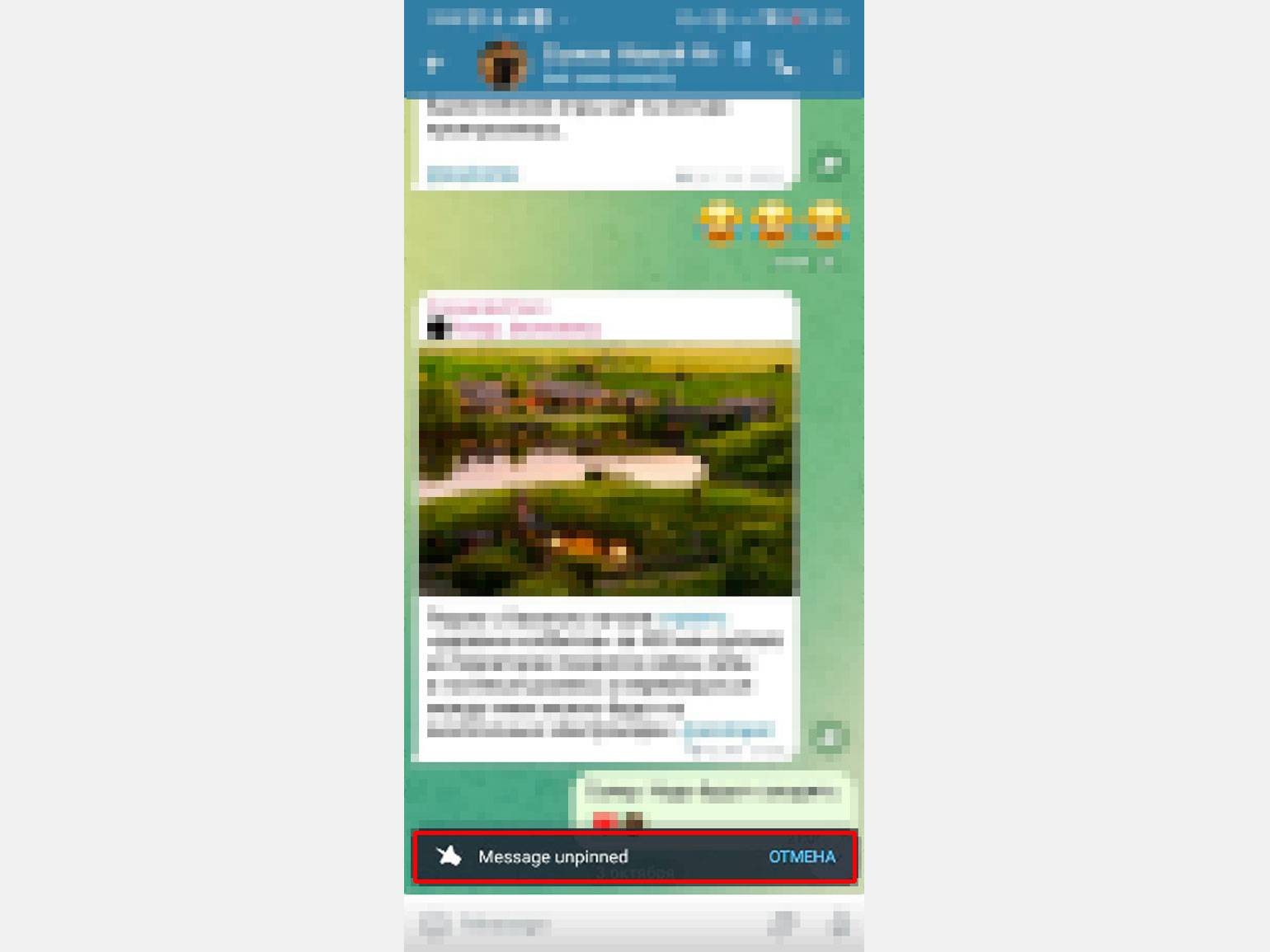 На Android после открепления сообщения в мессенджере появляется небольшое уведомление — «Закреплённое сообщение откреплено», или «Message unpinned» в английской версии. Оно держится на экране несколько секунд. В этот момент действие можно отменить: просто нажмите «Отмена» в появившейся строке.