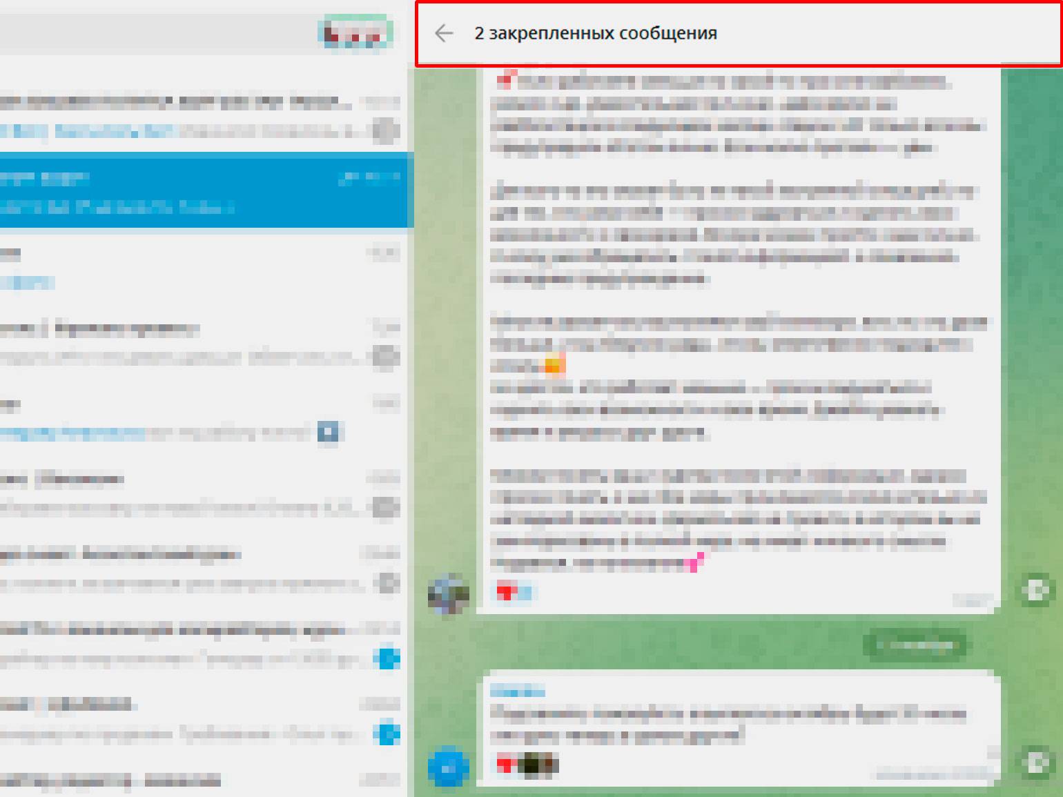 Если в чате или канале закреплено несколько сообщений, в верхней части экрана появится их список. Нажмите на значок, который находится справа от списка, и вы попадёте в отдельный чат — только с закреплёнными сообщениями. В верхней строке этого чата будет отображаться количество закреплённых сообщений в чате или канале.