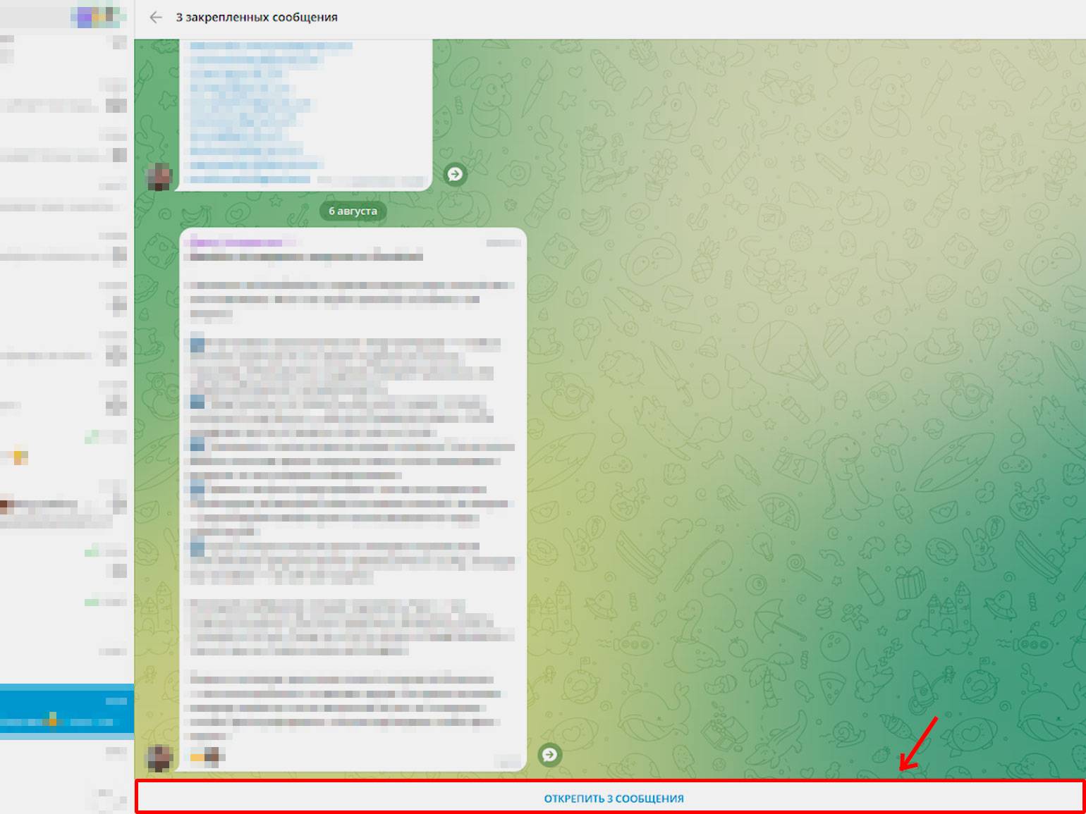 Если нужно открепить все сообщения, можно кликнуть по строке, которая расположена в самом низу чата, — «Открепить N сообщений». Тогда все сообщения одновременно открепятся.