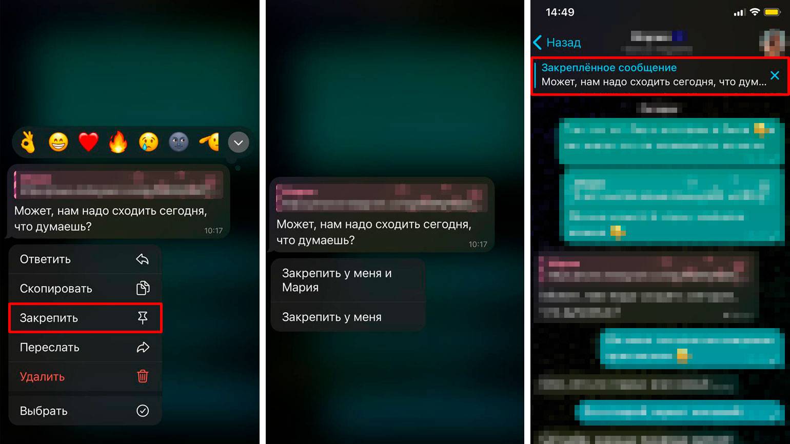 На смартфоне. На смартфоне процесс закрепления сообщения в чатах и канале будет немного различаться. Сначала разберём, как закреплять сообщение в личном чате.