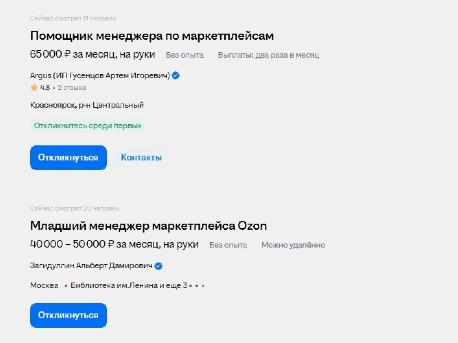 Вокруг торговли на маркетплейсах вырастают целые экосистемы, эта сфера формирует собственный рынок труда. Поэтому спрос на квалифицированных специалистов год к году только растёт. Так, в первом полугодии 2025 года интерес к услугам менеджеров маркетплейсов вырос почти в четыре раза в сравнении с первым полугодием 2024 года.
