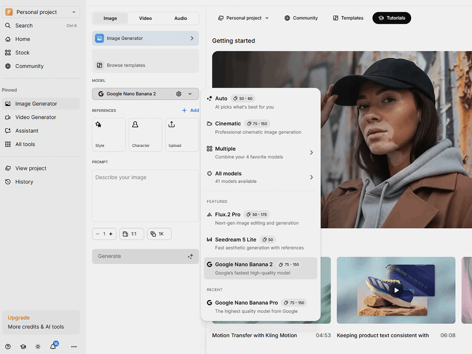 Для генерации графического контента — фото и видео — коммуникационное агентство Stanley Group использует практически все ключевые модели, подключённые через All-in-One AI Creative Suite — блок для работы с нейросетями внутри собственного фотобанка, рассказывает Николас Стэнли.