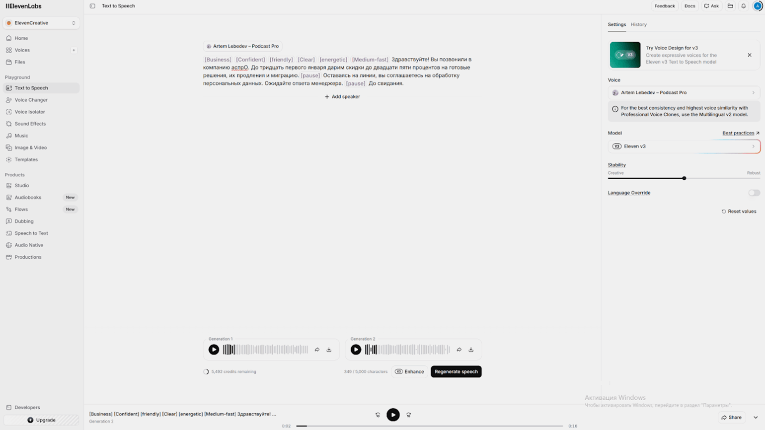Для некоторых задач эксперты используют комплексно несколько инструментов и сервисов. Например, для создания маркетинговых видео можно использовать Syntx AI, который объединяет несколько ИИ-инструментов в одном интерфейсе, рассказывает PR-менеджер компании «Аспро» Андрей Таёкин. Сервис позволяет сгенерировать изображения в нейросетях Nano Banana или Midjourney, а затем конвертировать их в видео через инструменты Kling, Veo или Runway. Озвучку можно сгенерировать через Eleven Labs, а затем дополнительно обработать звук в Adobe Podcast, чтобы улучшить качество записи.