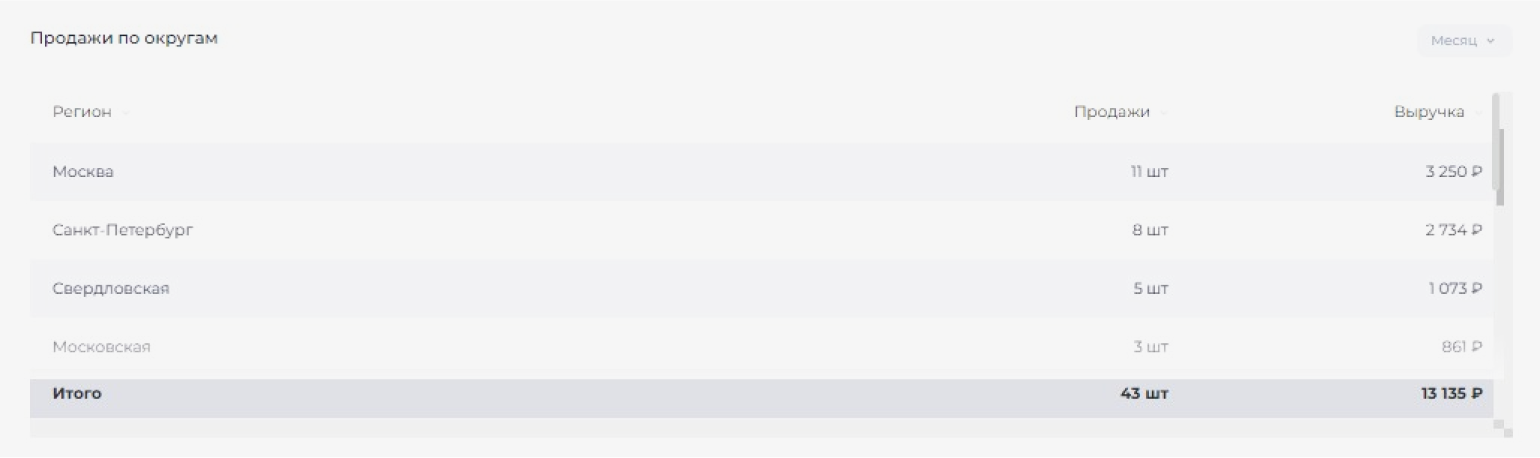 Карта продаж. В этом разделе отображаются страны, округа, области и регионы, в которых продаются ваши товары. Срезы по регионам доступны только для заказов по России. Сейчас раздел дорабатывается — возможно, в нём появятся новые функции.