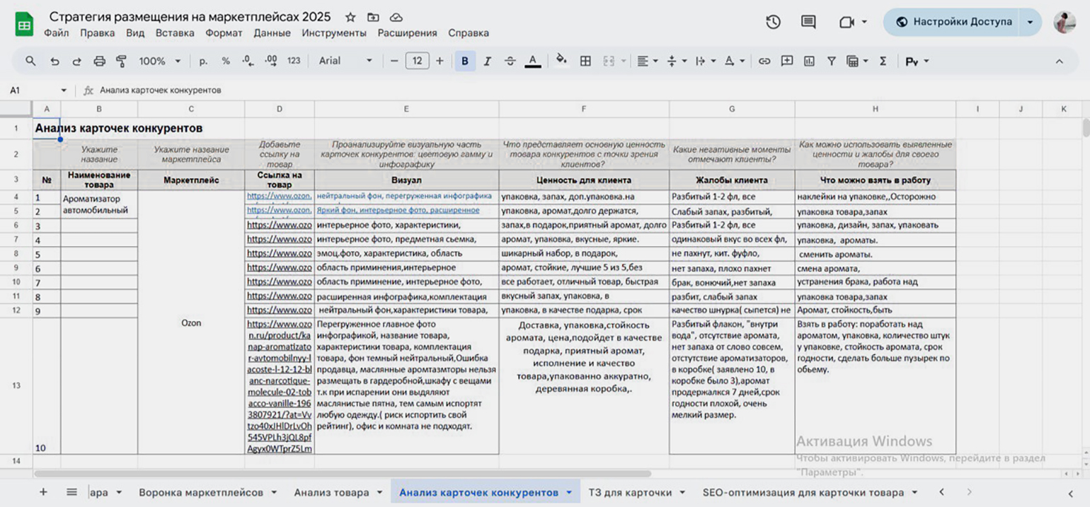 Моя дипломная работа была достаточно объёмной и состояла из нескольких блоков: выход на Ozon, стратегия продаж на Wildberries и общий алгоритм работы селлера. Сделала я её, конечно, не с первого раза, но в итоге со всем справилась — и, честно говоря, результат получился очень крутым. Теперь у меня есть полноценный кейс с расчётом юнит-экономики, карточками товаров, стратегией выхода.