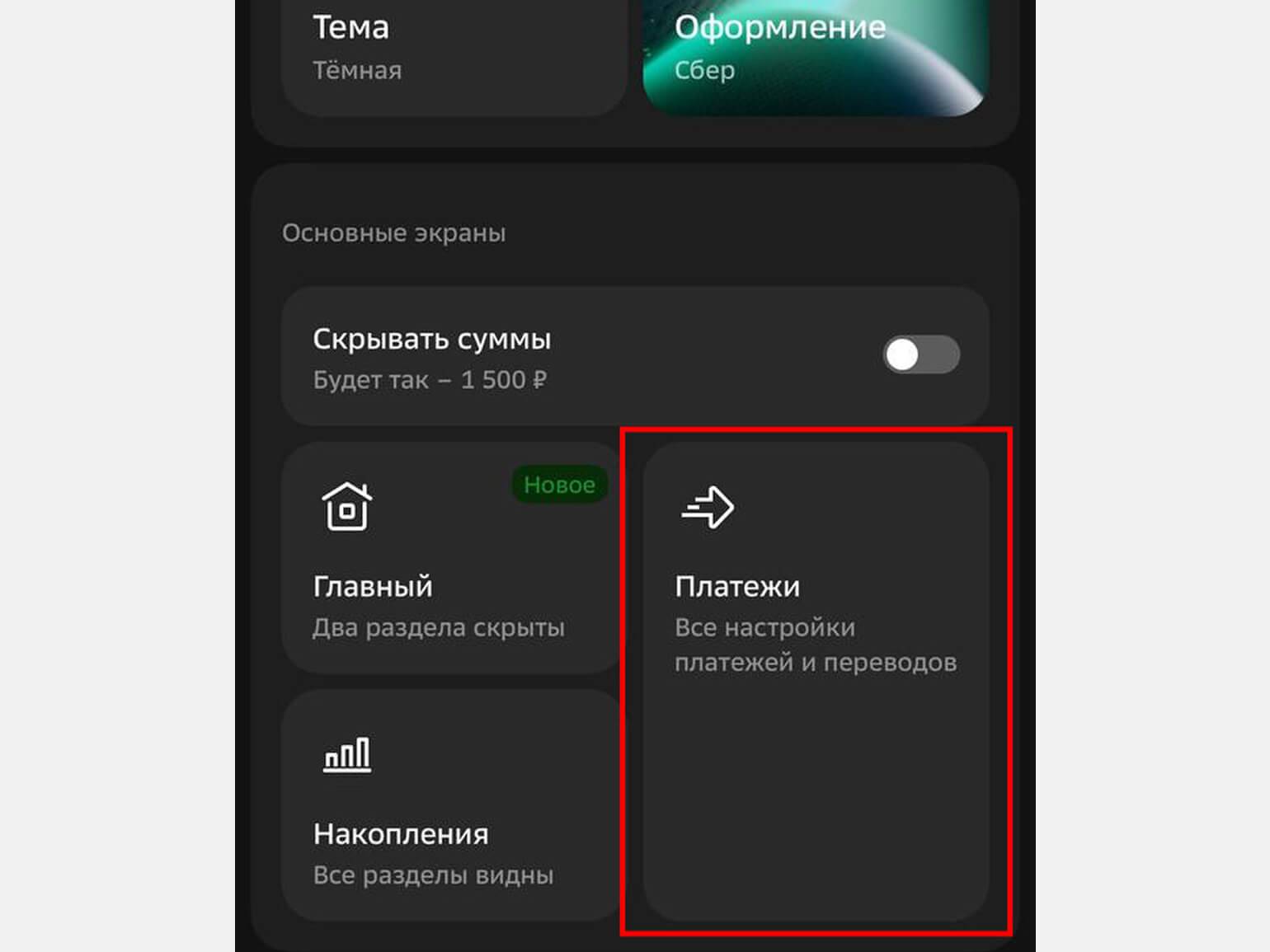 - Выберите пункт «Платежи».