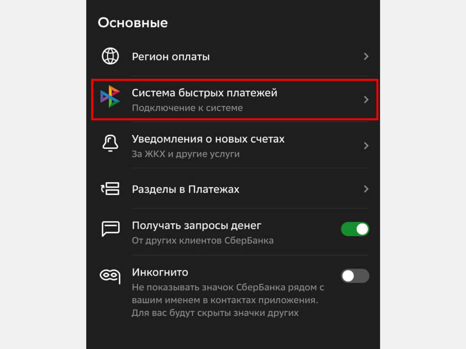 - Перейдите в раздел «Система быстрых платежей».