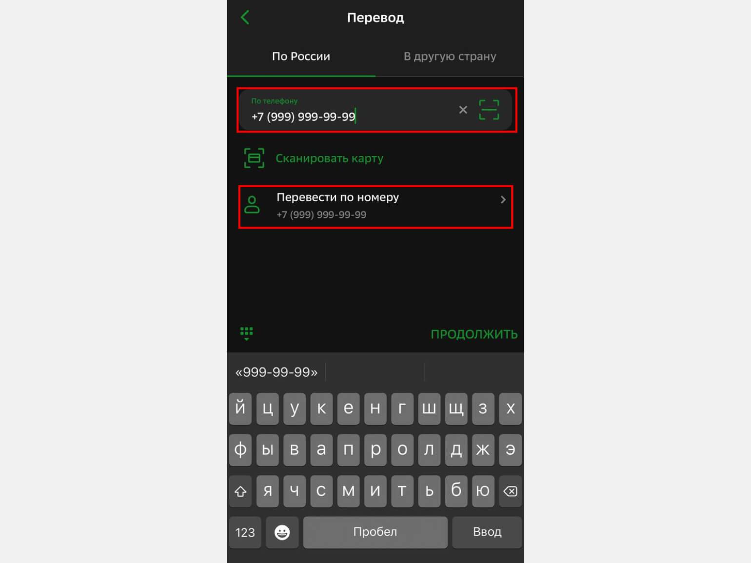 - Перед переводом всегда проверяйте, правильно ли введён номер.