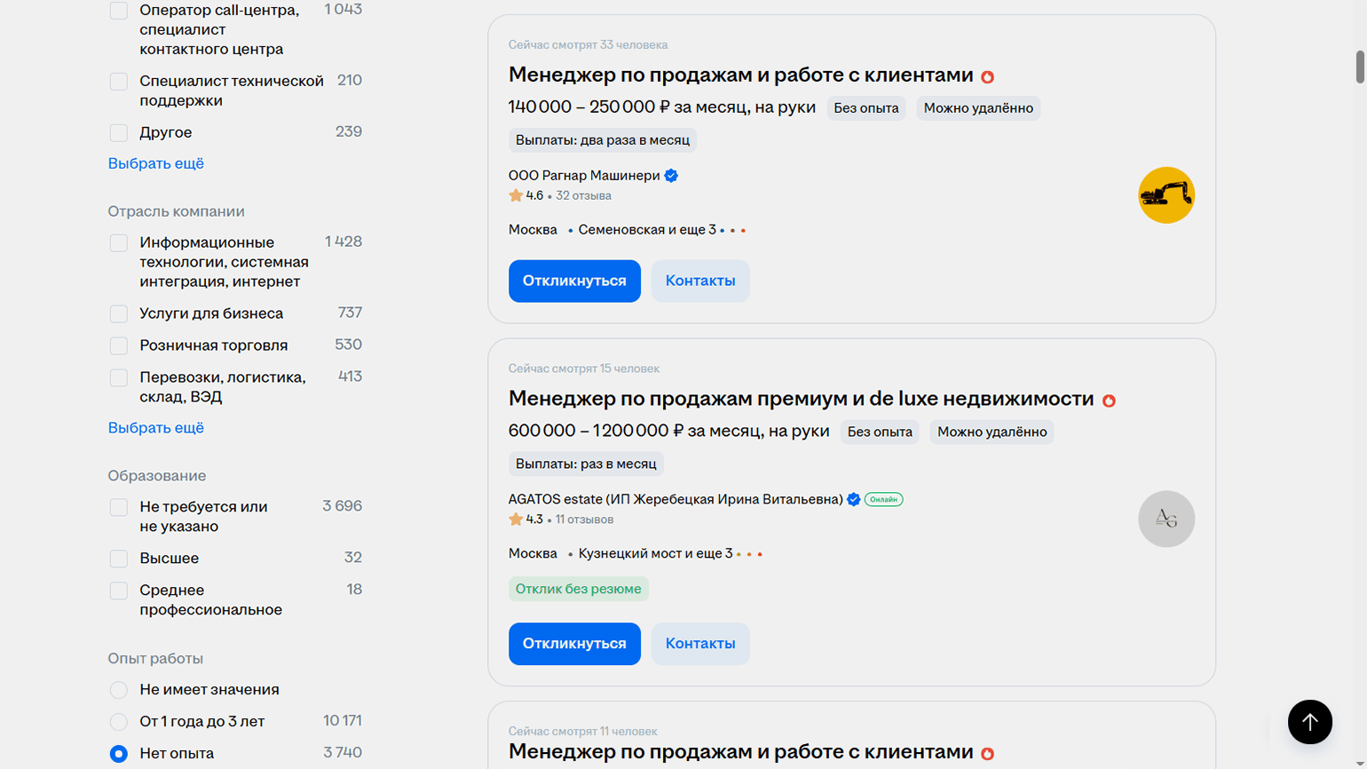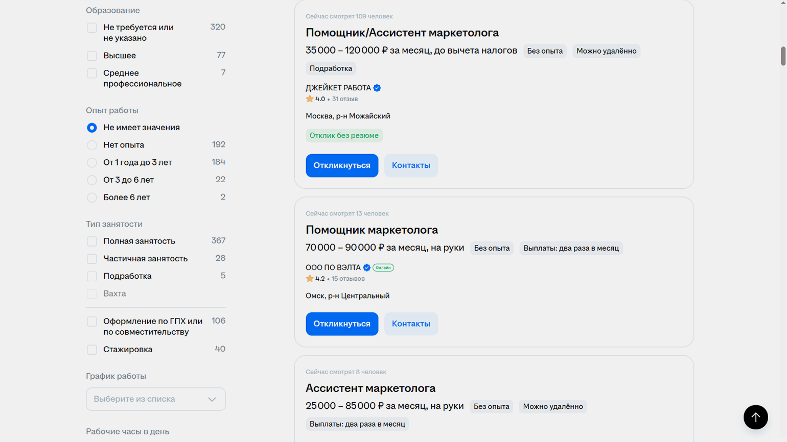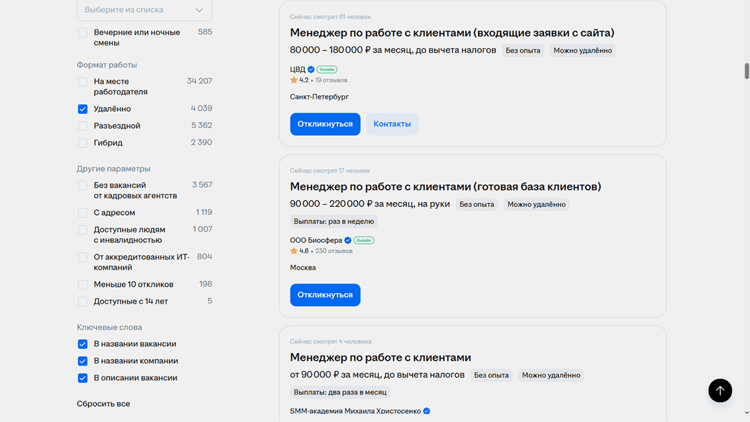 На таких платформах удобно фильтровать вакансии по зарплате, опыту, формату и графику. После настройки фильтров сервис покажет релевантные предложения.