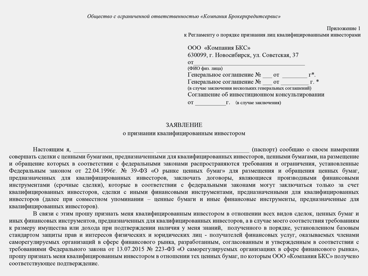 Подать заявление. Это можно сделать через личный кабинет, в мобильном приложении брокера или офисе брокерской компании. В заявлении физлицо подтверждает, что осознаёт все риски, которые связаны с инвестициями.