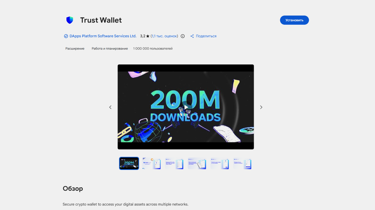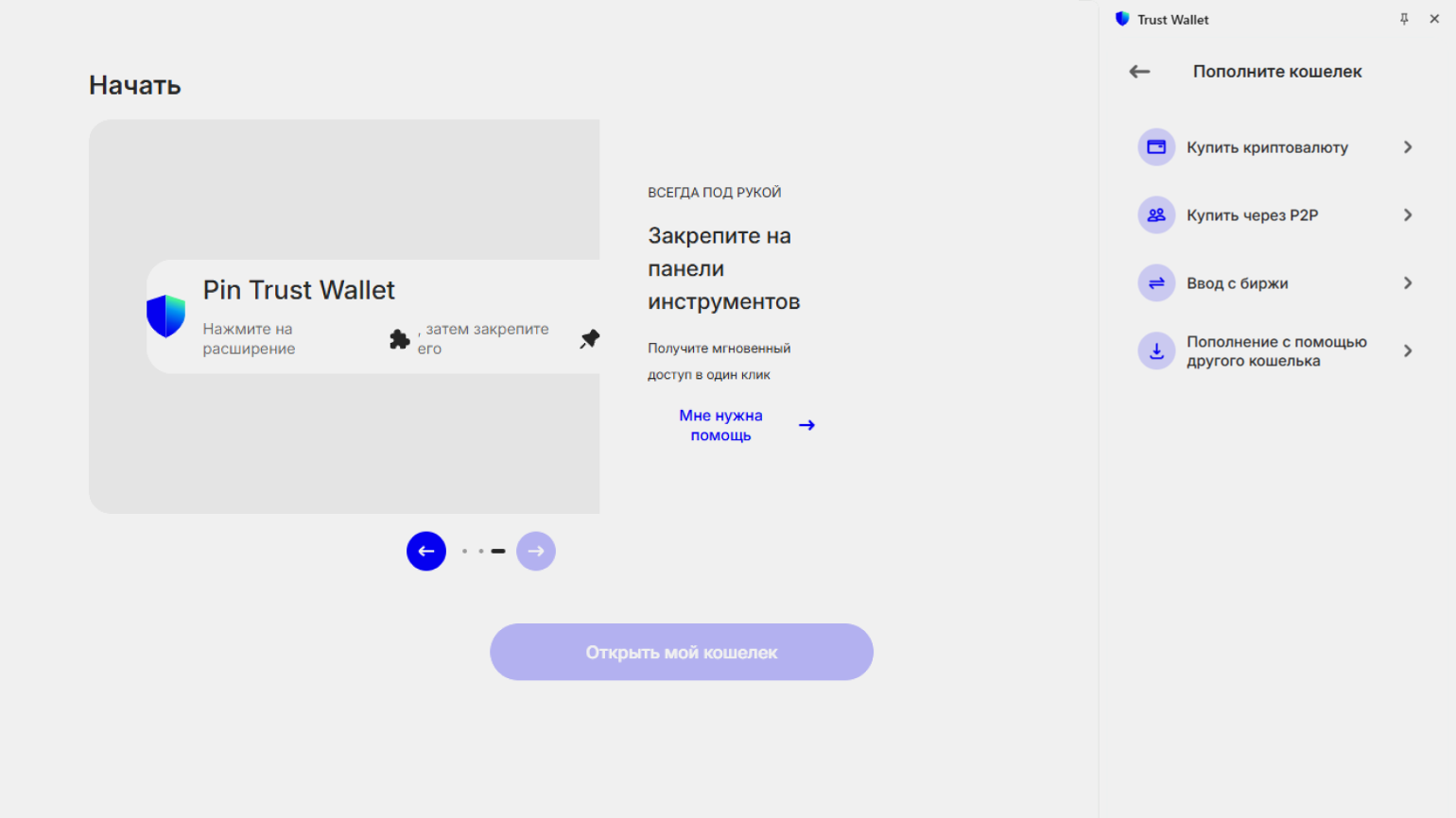 Разберём пошагово создание кошелька и работу в нём на примере случайно выбранного простого некастодиального кошелька Trust Wallet в браузере Chrome.