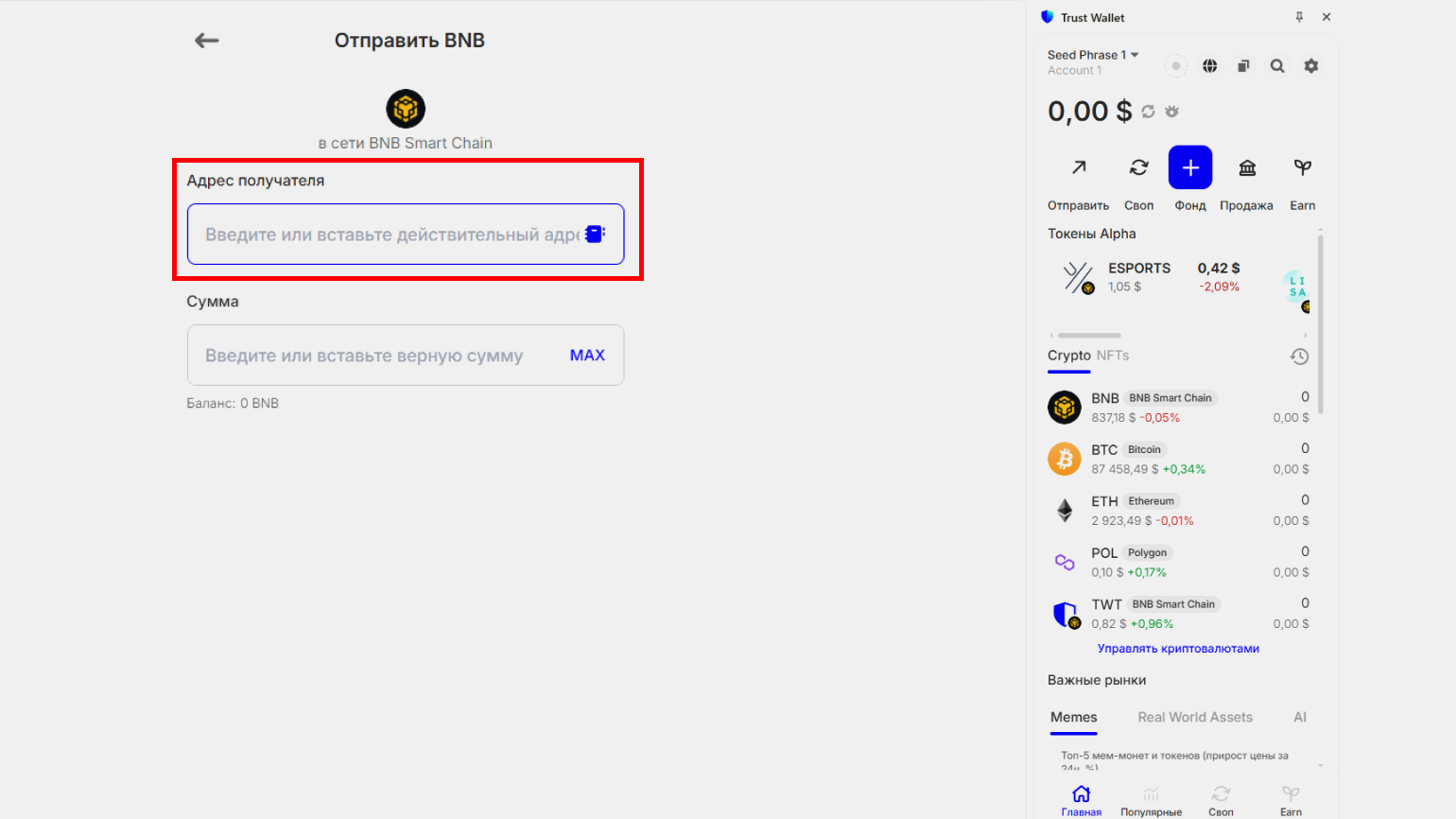 Это удобный вариант для новичков, но он создаёт риски для безопасности. Если биржу взломают, заблокируют или начнут преследовать из-за каких-то нарушений, вы можете временно или навсегда потерять доступ к средствам. Поэтому опытные криптоинвесторы часто предпочитают некастодиальные кошельки.