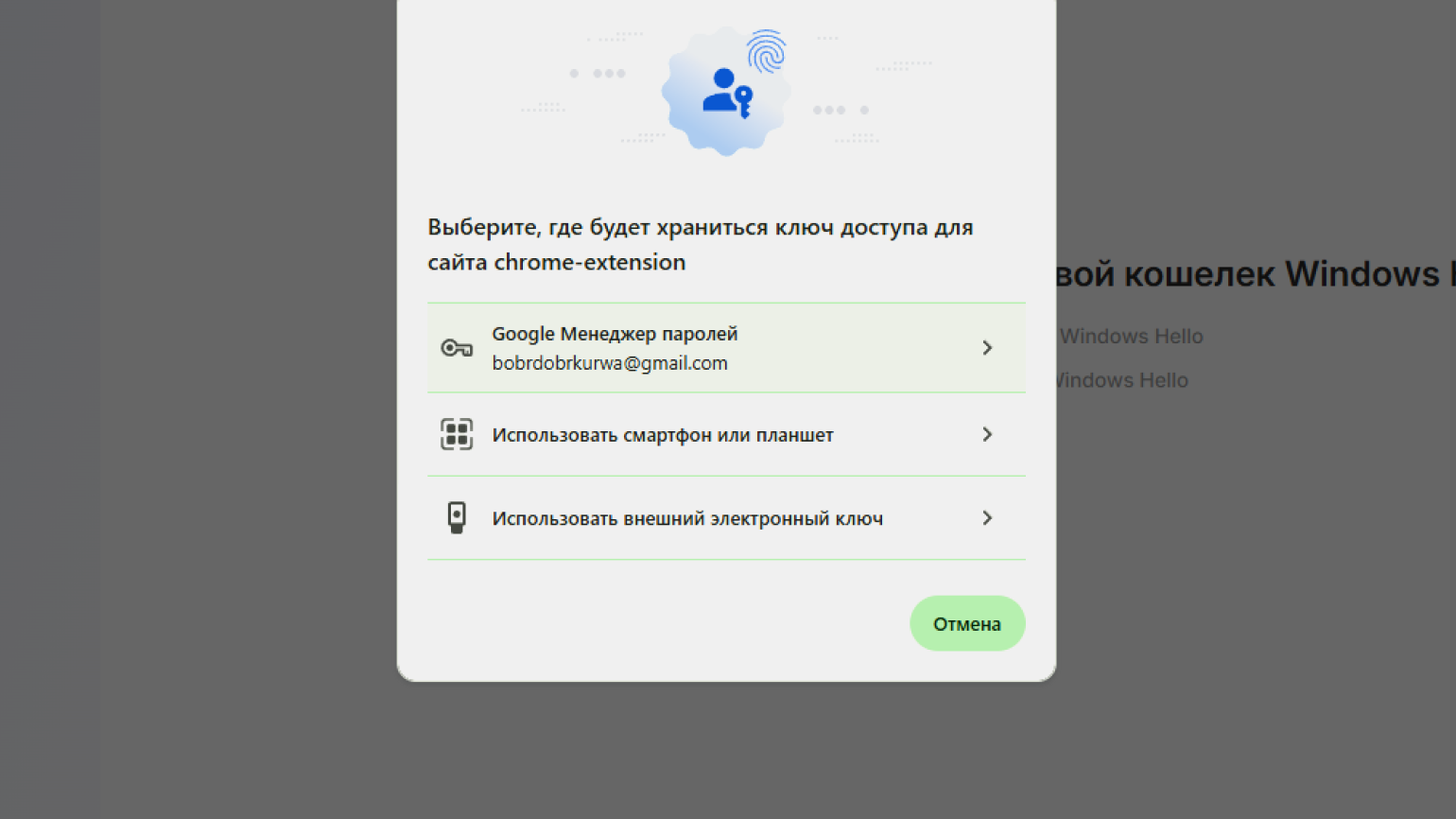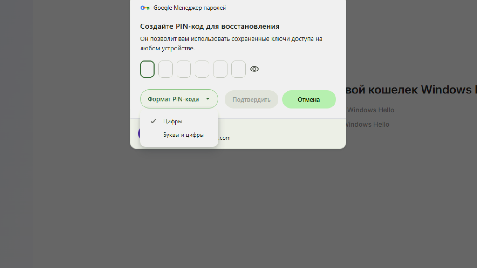 Чтобы создать кошелёк, можно использовать Windows Hello — то есть привязать кошелёк к биометрическим данным или PIN-коду в операционной системе Windows. А можно придумать только пароль — не менее восьми символов.