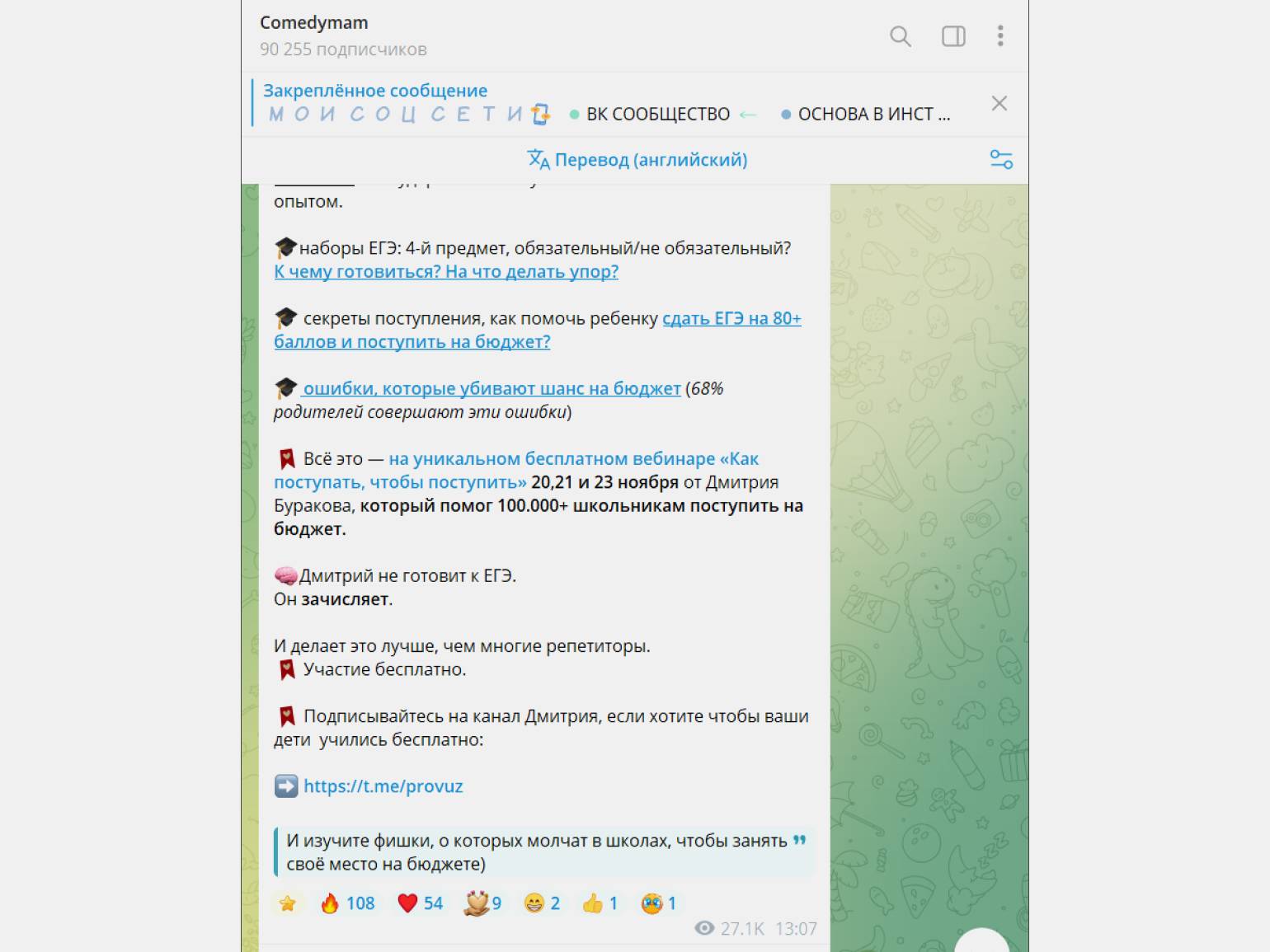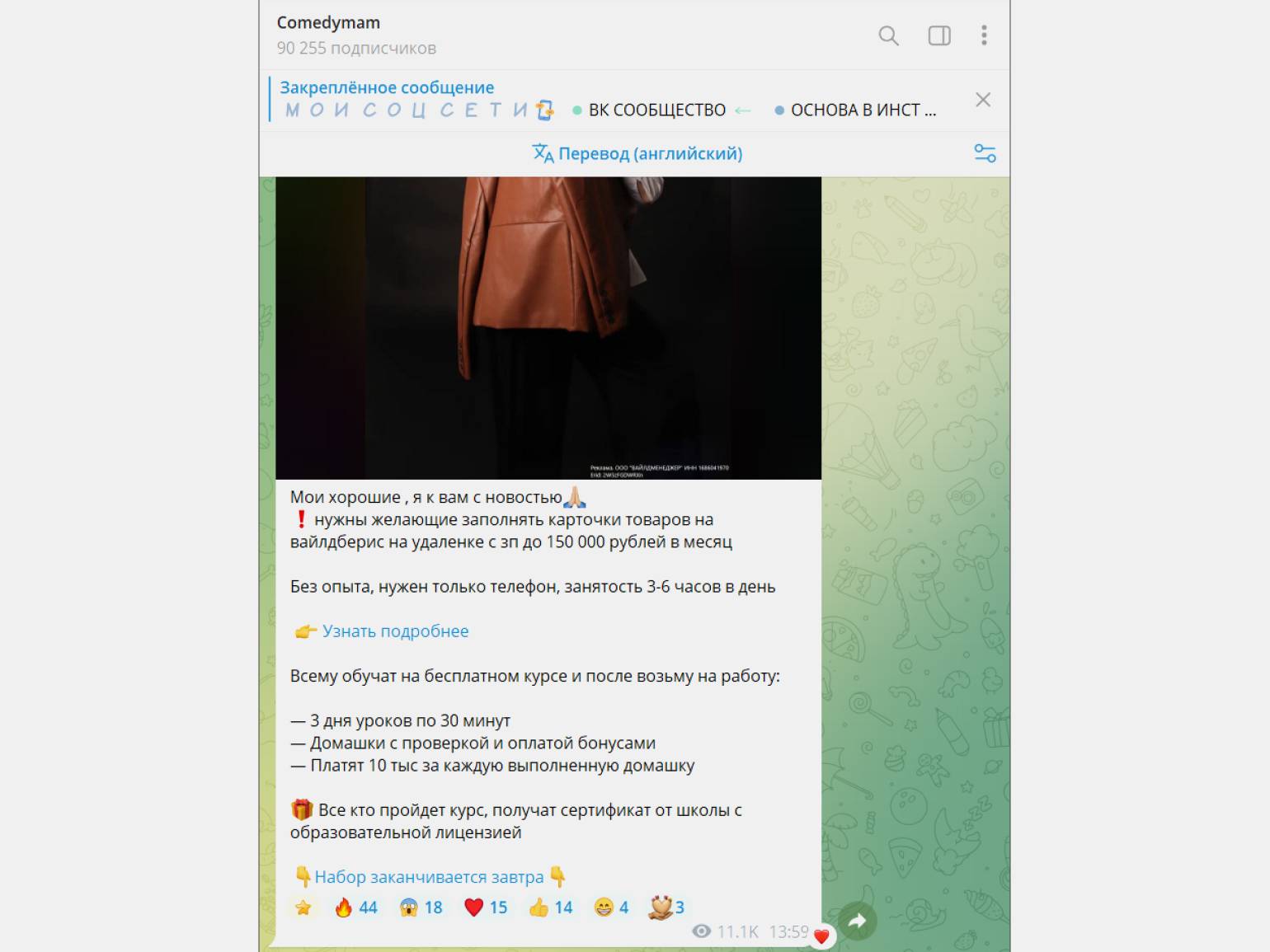 Скриншот: @comedymam / Telegram / Skillbox Media