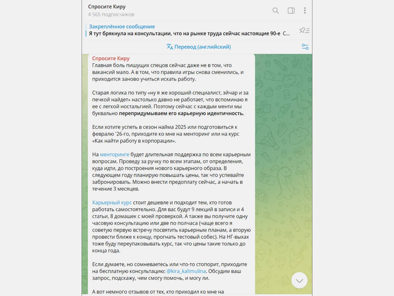 автор телеграм-канала «Спросите Киру» и карьерный консультант