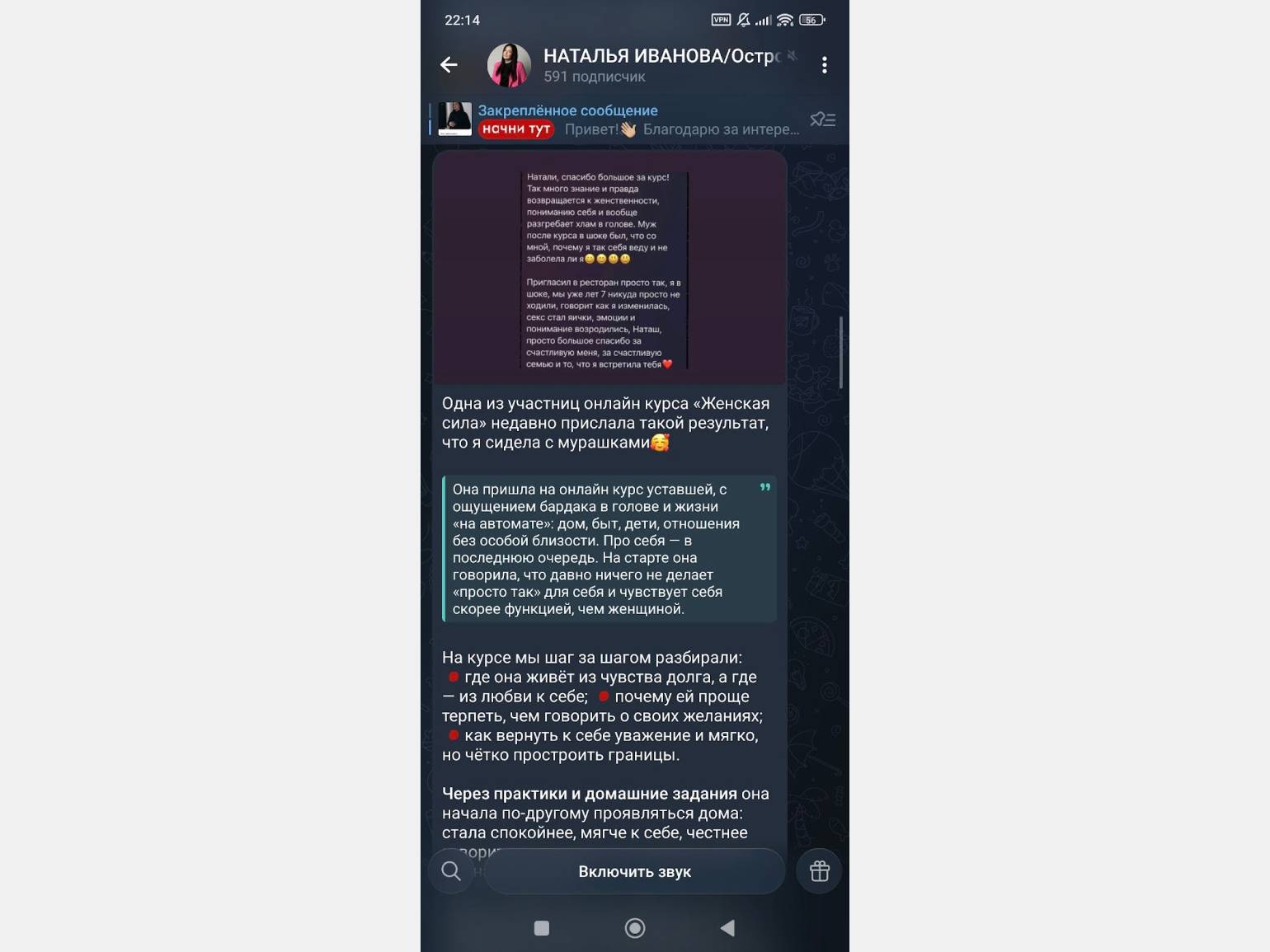 Например, психолог Наталья Иванова в своём канале продаёт не только консультации, но и авторские курсы, вебинары и тетради с практиками для самостоятельной работы.