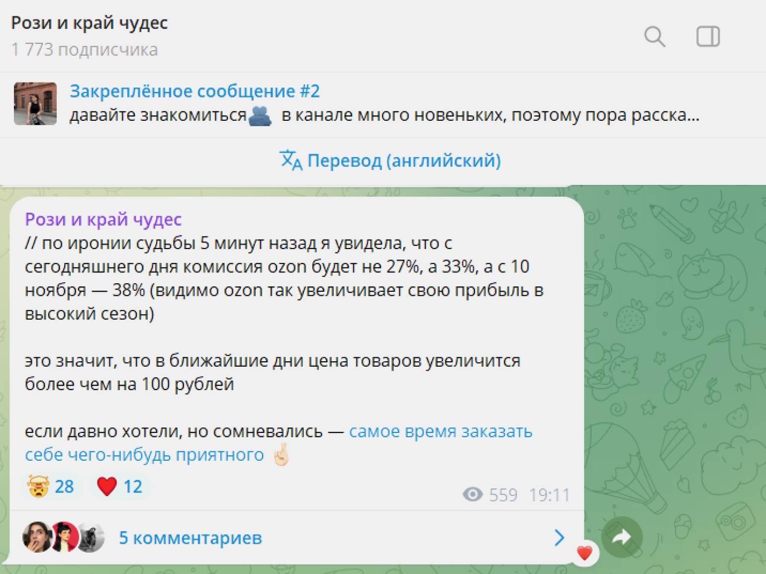 Как назначить цену за пост. В целом цены на рекламу в Telegram растут, но оптимальный ценник можно подобрать только путём экспериментов. Я сама несколько раз поднимала и опускала стоимость, пока не попала в комфортный диапазон. При расчёте нужно смотреть не только на охват, но и на покупательную способность подписчиков канала.