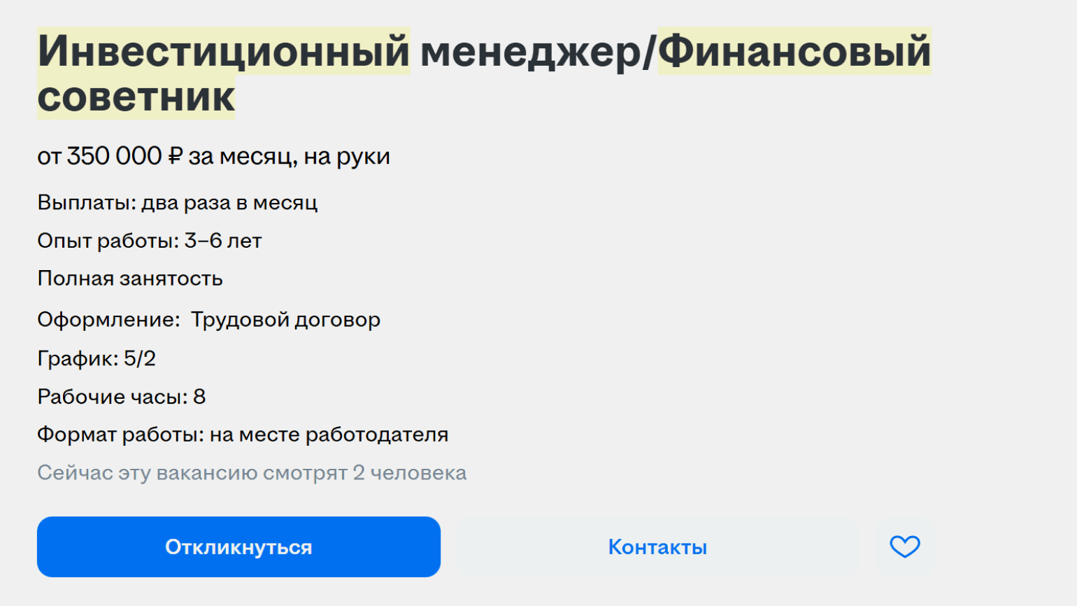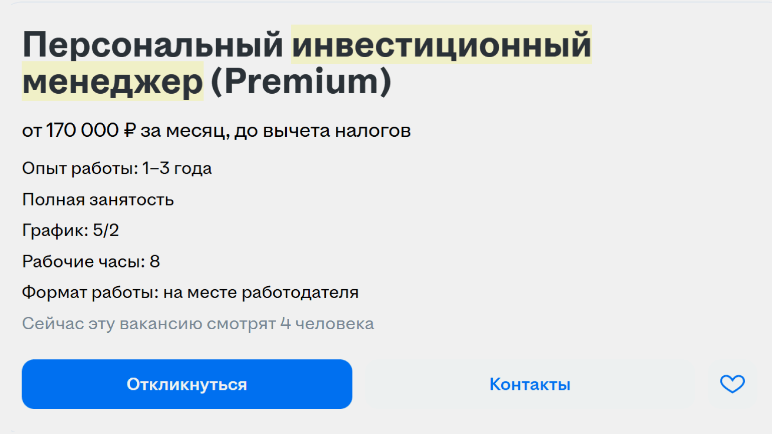 В галерее ниже мы привели в пример разные вакансии для опытных специалистов. В них работодатели предлагают от 170 тысяч рублей в месяц.