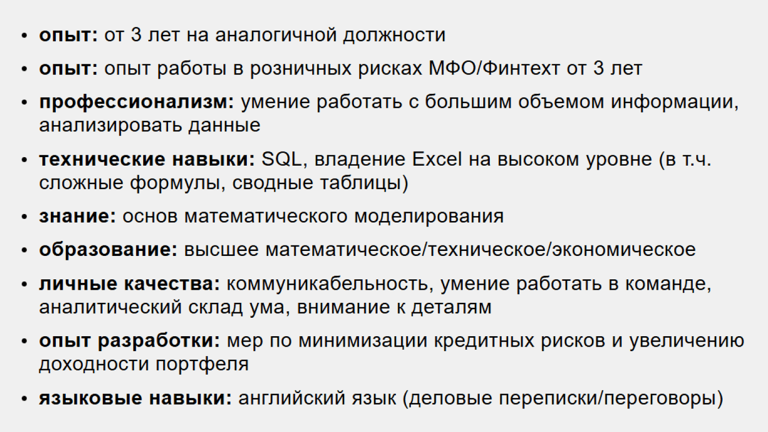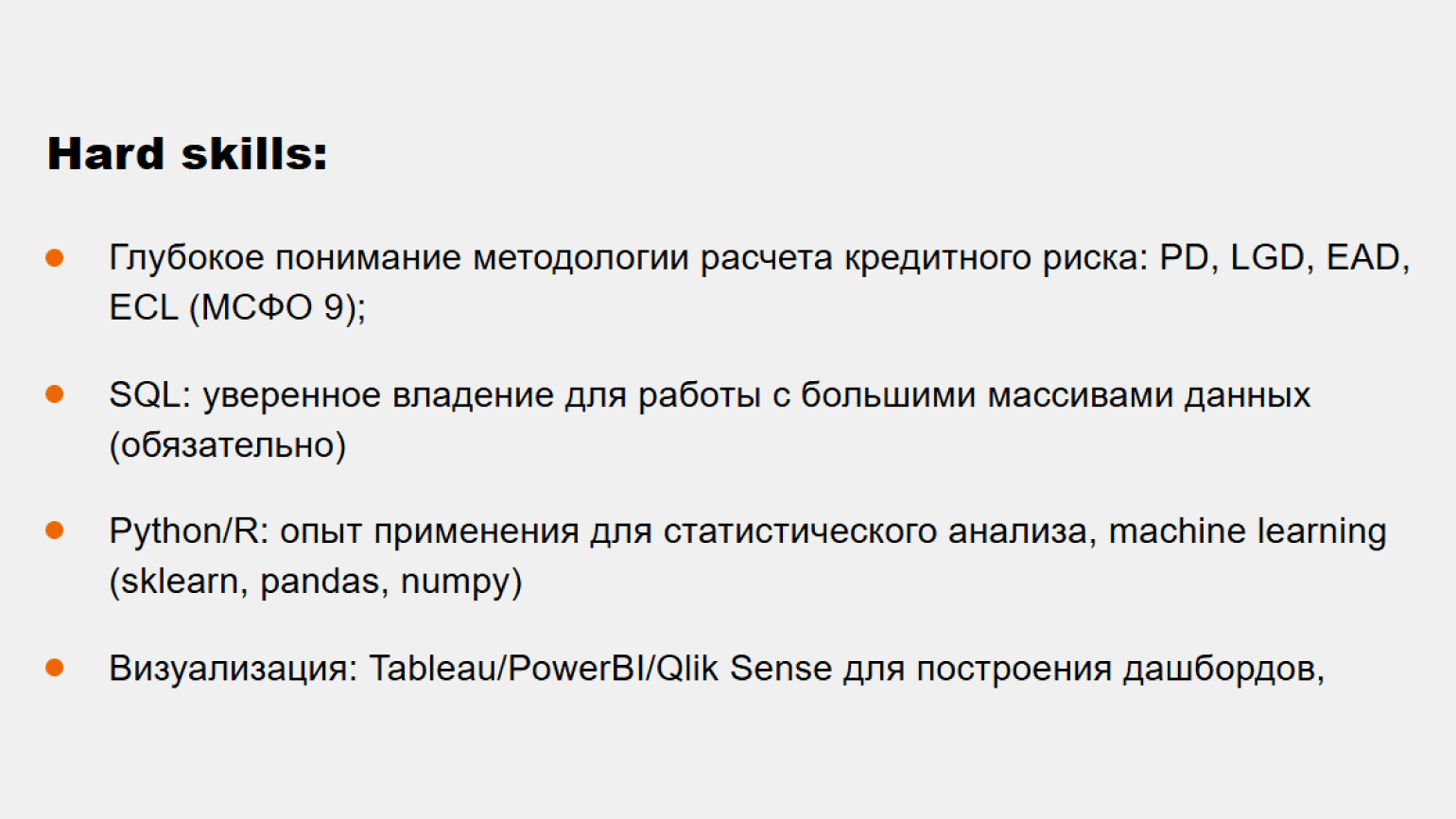 Умение анализировать и управлять рисками — специалист должен уметь анализировать данные, прогнозировать изменения, оценивать риски и разрабатывать стратегии для их минимизации.