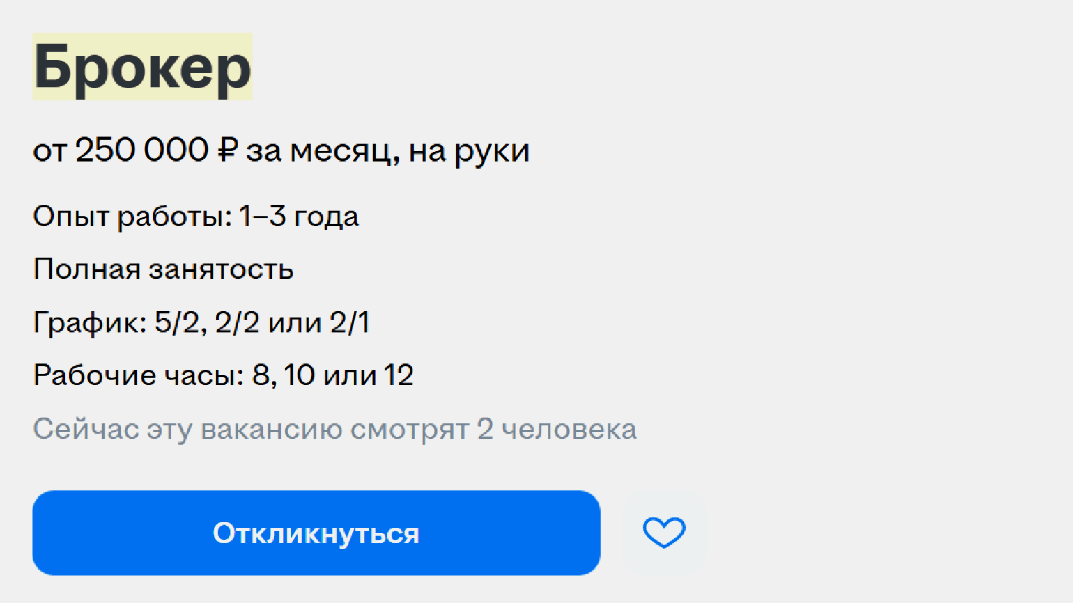 Например, в Уфе менеджеру по работе с клиентами в брокерской компании предлагают зарплату от 60 тысяч рублей в месяц. В Москве есть вакансии для менеджеров с похожими обязанностями и зарплатой от 250 тысяч рублей.