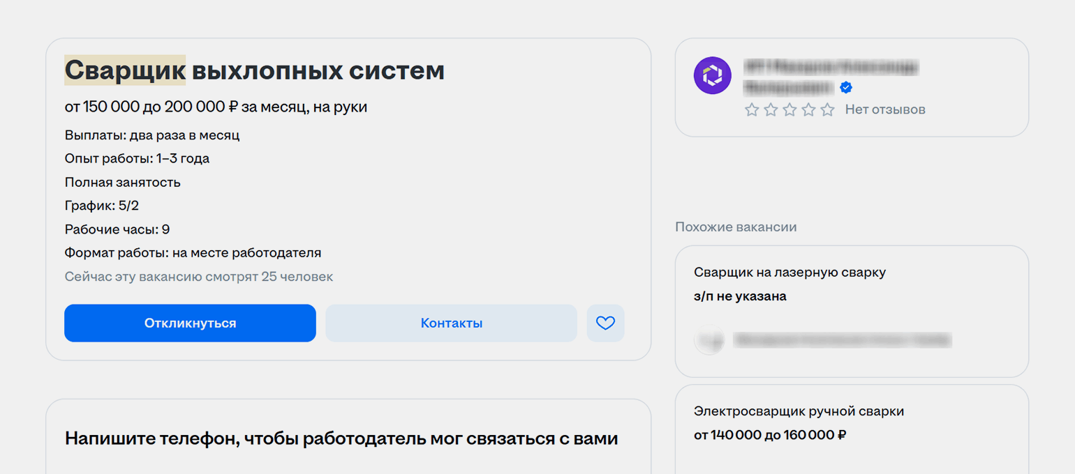Средняя зарплата сварщика в вакансиях по России в феврале 2026 года составляла 200 885 рублей, по данным «ГородРабот.ру». Уровень дохода сварщиков связан с практическими навыками и готовностью работать в сложных условиях: чем выше квалификация и мобильность, тем выше заработок.