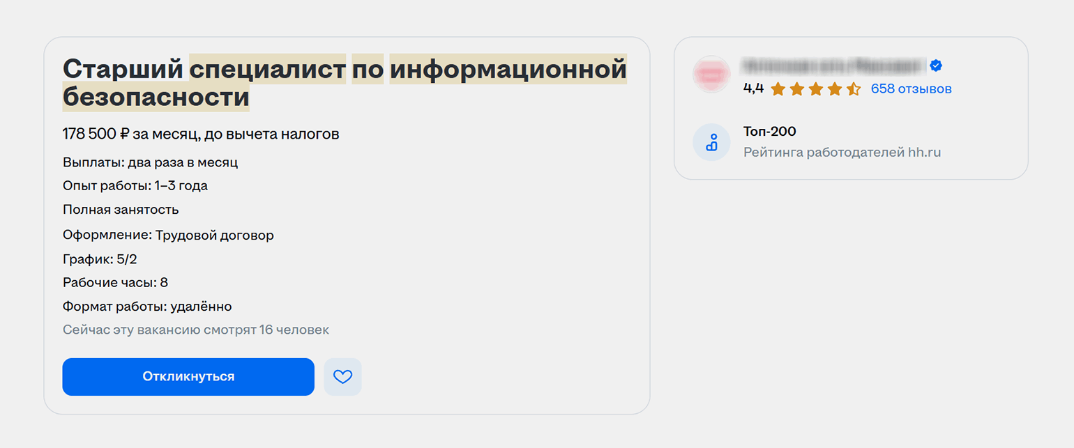 Средняя зарплата в вакансиях специалистов в феврале 2026 года составляла 88 878 рублей, по данным «ГородРабот.ру». Уровень дохода зависит от опыта, глубины технической экспертизы, знания стандартов безопасности, а также уровня ответственности.