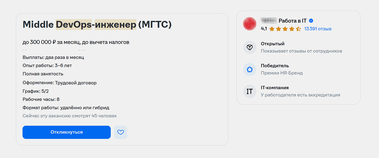 Средняя зарплата специалистов составляет 245 000 рублей, по данным «Хабр Карьеры». Уровень дохода зависит от сложности инфраструктуры, опыта работы, уровня ответственности и масштаба проектов.