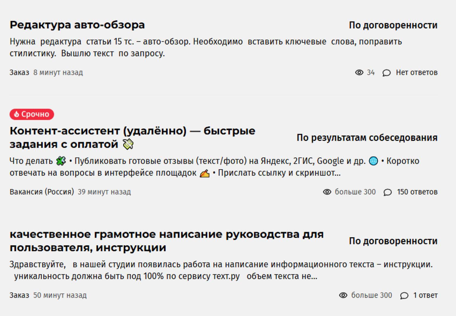 На одних биржах отклик на задание может быть платным, на других — бесплатным. Важно помнить: интересные задания расходятся очень быстро, поэтому лучше регулярно проверять сайт или включить уведомления в приложении, чтобы не пропустить подходящие предложения.