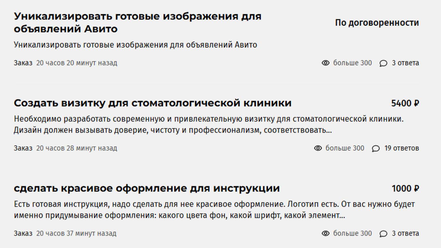 Сайты с объявлениями. Например «Авито» и «Яндекс Услуги». На них можно не только искать задания, но и разместить собственное резюме, чтобы заказчики сами могли вас найти. Однако лучше не ждать, пока кто-то напишет, а активно откликаться на вакансии — так шанс получить заказ выше.
